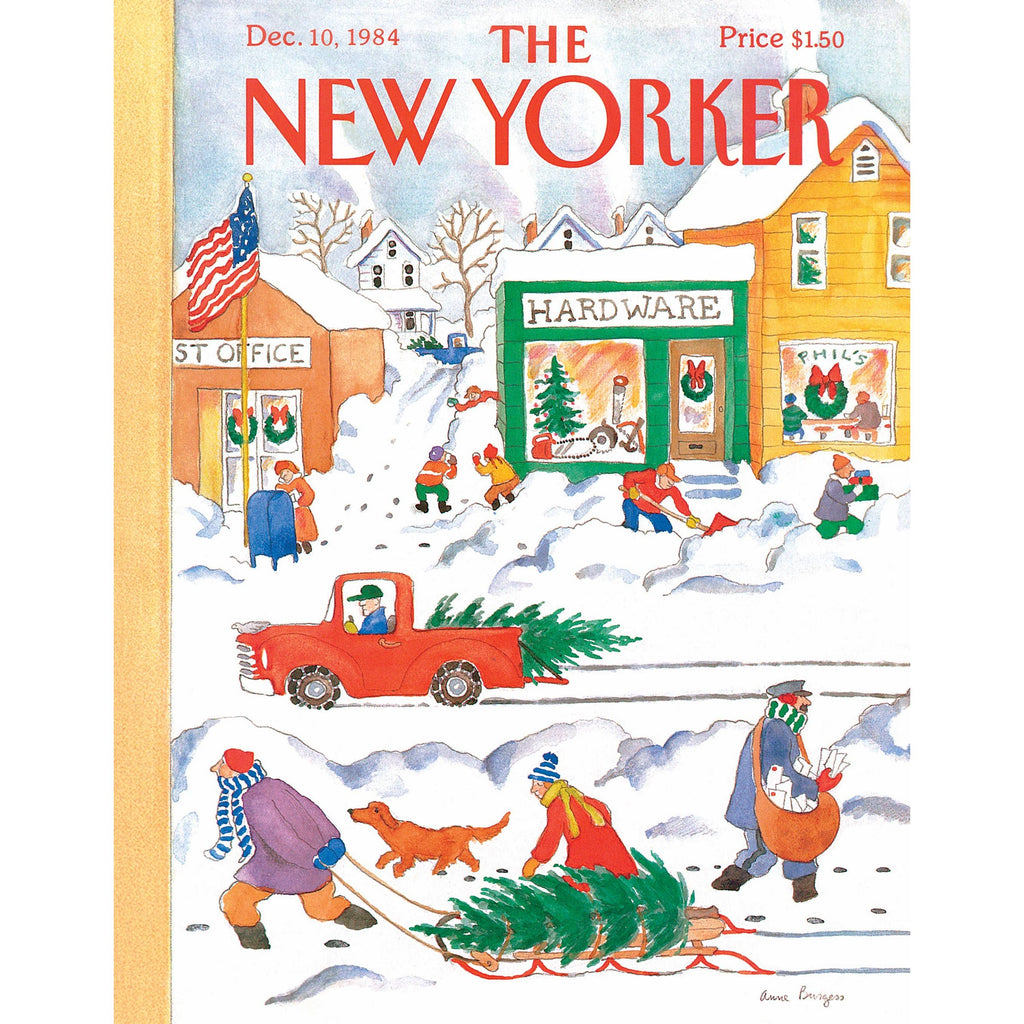 Bring home the magic of the holidays with the Snow Day 100-piece mini puzzle, featuring the December 10, 1984 cover of The New Yorker by artist Anne Burgess. This charming winter scene captures a bustling city street during the Christmas season—shoppers rushing through snow-covered sidewalks, picking out Christmas trees, and admiring shop windows glowing with colorful holiday decorations. Snow blankets the buildings and roads, evoking the crisp chill and cozy cheer of a classic holiday moment. Perfect for puzzle lovers, art collectors, and fans of nostalgic winter scenes, this compact puzzle makes a thoughtful gift or festive addition to your seasonal collection. 100 Piece Jigsaw Puzzle Finished Puzzle Size: 7"x9" Linen Style Finish to reduce glare Made in USA Recommended Age: 10+ Years