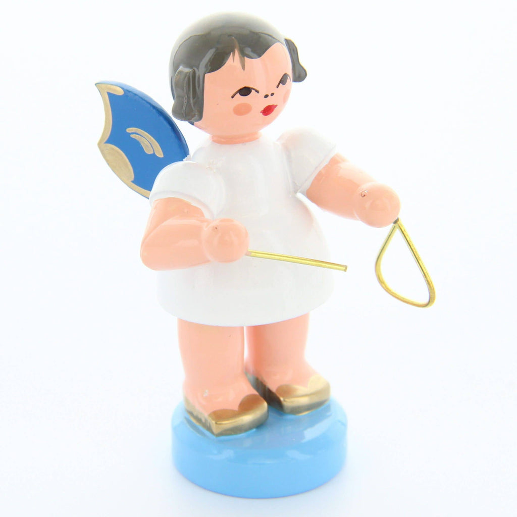 Angel with Electric Violin, blue Originally, the Christmas angels weren’t meant to be angels at all. In early 1990, the Uhlig company came up with the idea to produce flower children. However, the first prototypes of the figures weren’t completed until summer. Since selling flower children in winter would have been difficult, they were quickly given wings — and thus became angels. Today, there are 750 different versions. They play various instruments, bake Stollen, or float with a candle on the Christmas tree. Each one proudly wears its signature curved wings, available in three color variations: blue, red, and natural wood. They can be collected, given as gifts, personalized, and beautifully arranged — not just during the Christmas season.