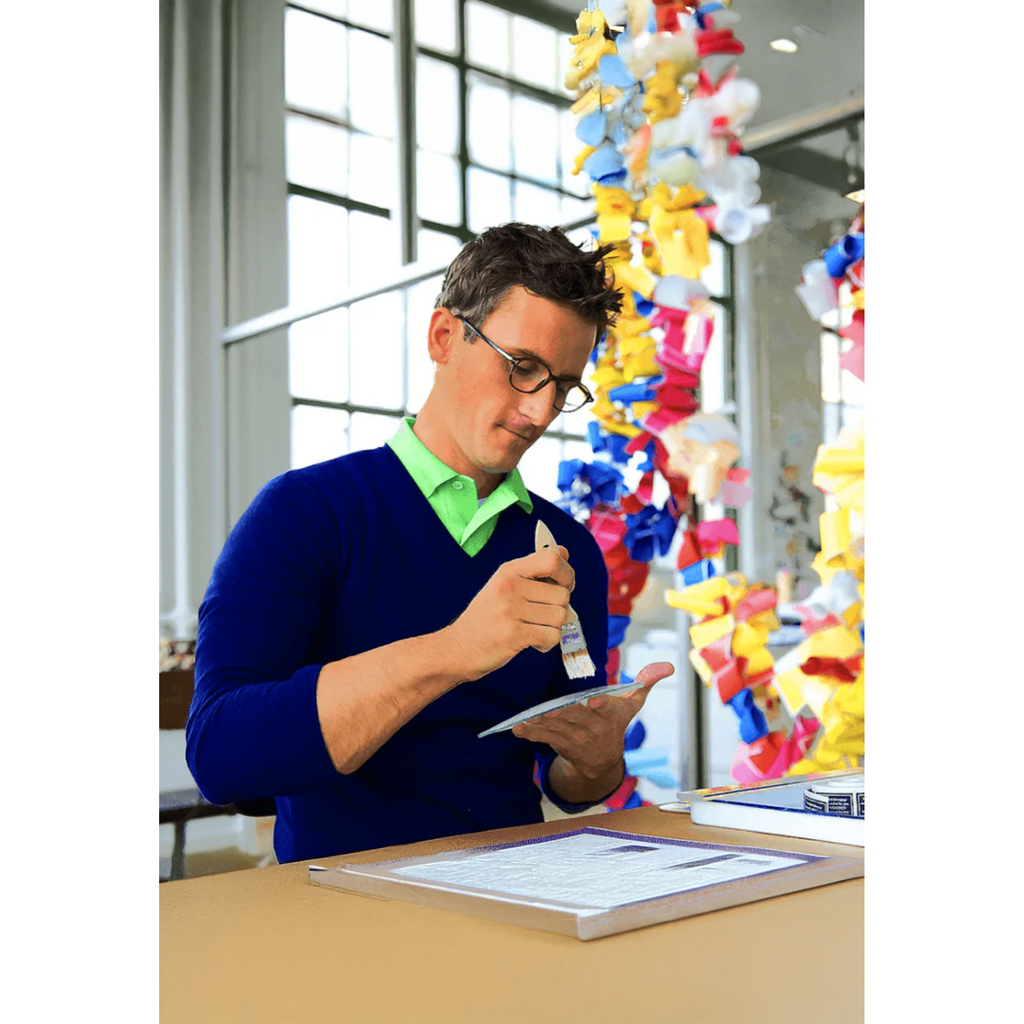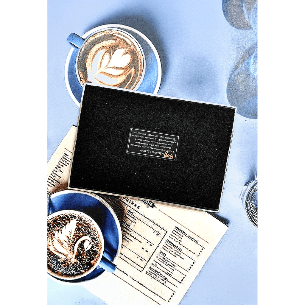 Embodying the timeless elegance of French champagne culture, this bent-glass decoupage tray is handcrafted with precision in our New York studio. Featuring the iconic Veuve Clicquot Brut label in its signature saffron hue, it is a celebration of refined indulgence and Ben’s singular knack for capturing the spirit of the charming and unexpected. Every tray is hand-signed by Ben himself, a discreet hallmark of its artisanal provenance. Equal parts functional and collectible, this tray is food safe, easily wiped clean, and finished with a luxe felted backing to protect surfaces in style. Command attention on a bar cart, serve oysters and bubbles with panache, or display upright on a gallery easel. It also hangs beautifully with a plate hanger—turning your celebratory moments into everyday art. A folded card detailing the centuries-old decoupage technique accompanies each piece, adding narrative depth for gifting or personal keepsake. Style#: DPI-4590