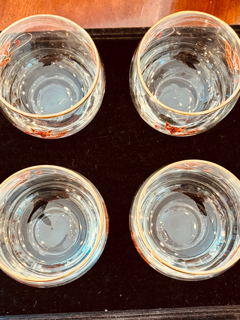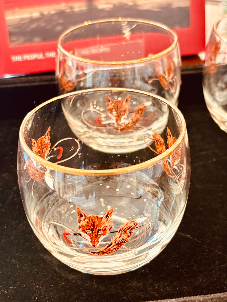 Set of 4, Vintage Hand Painted Gold Rimmed Roly Poly Glasses with Three Fox 🦊 Heads on each. Each in very good condition for age and use.