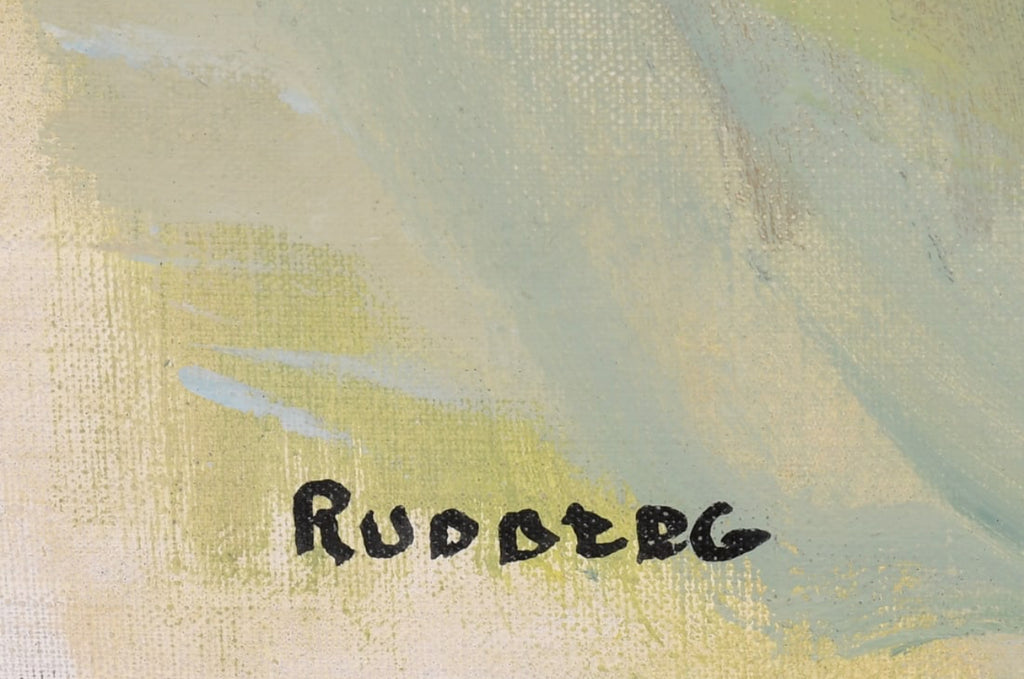 Known for his luminous Scandinavian seascapes and simplified planes of color, Rudberg captured the shifting light and atmosphere of the Swedish coast. Trained at the Royal Academy of Copenhagen and Stockholm, he exhibited widely, including at Konstnärshuset and Waldemarsudde, and his work is represented in the Moderna Museet, Stockholm. Signed LL